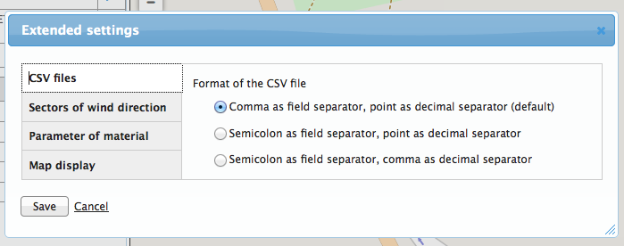 These settings permit e.g. the use of input files with a csv file format different from the one you would like to use for the result files in the download menu.